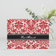 Custom Bat Mitzvah party invitations in elegant bright red, black and white classic floral damask pattern. Add your name and party details for a unique and stylish Bat Mitzvah party invitation.