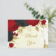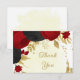 Romantic dark red & black flowers with gold leaves botanical wedding thank you card.