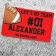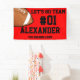 Cheer on your team with this Red Black Football Team Banner. Personalize with your athlete's number and name, and the name of the team. You can even change the message. Show off your team spirit this summer.