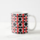 Red Black Geometric Pattern Coffee Mug. Red Black Colour Geometric Diamond Circle Floral Pattern.