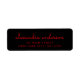 Red and Black Modern and Elegant Black Script Typography Wedding Invitation Return Address Label which is great for a Save the Date, RSVP, Bridal Shower, Baby Shower, Birthday Party, or Christmas Holiday Card or Invitation. The text of this hand lettered modern script typography label can be updated and customized with your name and address. These Baby Shower, Bridal Shower, Bachelorette Party by Mail, Wedding or Delay the Date Return Address Lables are perfect for that event or party that needs to moved to a new date.
