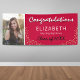 Celebrate graduation in style with our Personalized Graduation Party Banner! The banner boasts a customizable school colours backdrop, a dashing photo of the graduate embellished with a sparkling layer of glitter. With the word 'congratulations' scripted in a shadow script, along with the graduate's name, the school, and class year, this banner is the perfect centerpiece to any celebration. Change the background from bright red to any colour that matches your theme for a truly personalized touch!