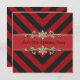 Woman's red and black bold stripe with gold and diamond floral swirl trim red and black fiftieth birthday party invitation. Matching envelope.