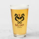 Monogrammed keepsake for your groomsmen and best man with a twin dragon monogram, the groomsman's name in a red vintage font suitable for a dragon-themed fantasy wedding, and his role beneath. Change the text to give the beer glass to groomsmen, a best man, father of the bride, father of the groom, or whomever you want to gift this fantasy wedding favour!