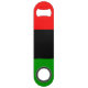 Speed bottle opener with a with the red, black, and green Pan African flag. This flag is also known as the Afro-American flag and Black Liberation Flag. Customizable.
