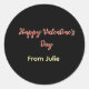Red black happy Valentine's day from name stylish Classic Round Sticker
