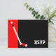Modern red and black hockey themed Bar Mitzvah RSVP response card.