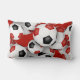 This team spirit lumbar pillow for a soccer player features varied size soccer balls with red & black team colours turned every which way on a white background and prominent jersey number in red overlying a full length black colour strip, upon which you can also customize the athlete's name, team name & mascot name in white - reverse side of pillow has a larger version of the soccer balls pattern overlying a red background - by katz_d_zynes - similarly styled hand towels for soccer players can be found in katz_d_zynes' Team name soccer towels & water bottles collection >>>>>> https://www.zazzle.com/collections/119856912745827517