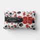 Red black lots of soccer balls team name lumbar pillow