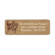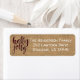These rustic return address labels with a simulated brown burlap pattern background have red and black Buffalo plaid lettering that says "holly jolly" on them. The name and address info is in white and is customizable.