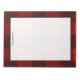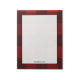 A notepad featuring a sheer centre section over a flannel inspired red and black plaid background. Personalize with your name in black.