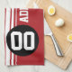 Red Black Racing Stripes Custom Name Number Kitchen Towel