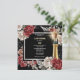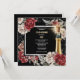 Beautiful white coloured anemone; also known as poppy flowers; together with ivory white and red roses are nestled against pale grey leaves which frame a faux gold bottle of bubbly with a cork exploding out it and a rectangular frame that has text templates for your personalized wording; all set against a midnight black background. The overall feel is stylish; elegant and chic. This is ideal for summer; spring; winter and fall any age birthday party events. Feel free to delete or move the templates around and to change the size and style of the fonts if preferred.