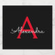 Red Black Script Girly Monogram Name Beer Bottle Label