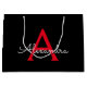 Red Black Script Girly Monogram Name Large Gift Bag