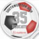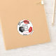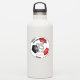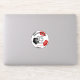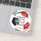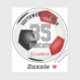 This team colours soccer sticker for boys or girls features the realistic image of a soccer ball that has red, black and white panels - customize the player's name, jersey number, team name and mascot name - by katz_d_zynes