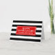 Employee or staff anniversary greeting card in red with black and white stripes.