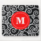 Red Black Swirl Monogram Mouse Pad. Pad