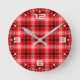 Red Black Tartan Chequered Plaid Pattern-24899 Round Clock