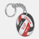 This red and black boys' volleyball double sided acrylic keychain features a customizable player name, court position, team name and school / club year on the front and player jersey number on the back - by katz_d_zynes