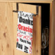 Kitchen towels that say thanks designed with red and black Thank You written in several languages and a variety of font styles over white.