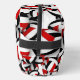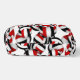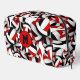 This volleyball themed Dopp kit features a random pattern of varied size red, black & white volleyballs turned every which way on a white background - customize with the volleyball player's monogram - by katz_d_zynes