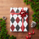 This geometric pattern gift wrapping paper features a red, black and white argyle plaid pattern with grey "stitching" extending diagonally across the diamond shapes - by katz_d_zynes