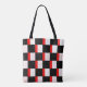 My original digital art on this tote bag features a colour-block pattern of squares and rectangle spaces processed and created for an artsy style. The front has Black and White squares with Red linear stripes alongside them and there is a slight faded bleed in the white areas for a distressed type of appearance. The back has the same pattern which gives a vintage retro vibe for a classic touch. These bags are great for carrying groceries, books, bible studies, toys, or use as a beach bag or gym bag; anything you need to carry around! This can also be used as a Gift Bag - stuff it with all kinds of goodies for anyone or as a swag bag at weddings! These bags are 16” x 16” with a 28” strap. All bags have a black laminated lining for sturdy support as well.