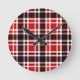 Red Black White Flannel Tartan Pattern Design Round Clock