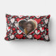 Red, Black & White Hearts and Flowers Personalized Lumbar Pillow