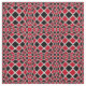 Seamless geometric pattern featuring geometric shapes in red, black and white. Texture with optical illusion effect.