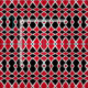Seamless decorative pattern featuring geometric shapes in red, black and white. Texture with optical illusion effect.