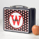 Red monogram against white red black circle. Insert NAME in black typography (up to eleven characters). Small red white circles against black background. Backside has white geometric polka dots against black background. Fun and cheery pattern. Original Design © TamiraZDesigns.