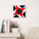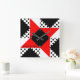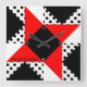 This updated quilt block features a black centre block with white numbers to mark each quarter hour. The numbers can be removed or changed to a different font or colour. Black and white polka dots and black, white and red triangles make up the pinwheel design of the quilt block. This design is only suitable for the square clocks.