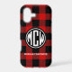 Red Black Wt Circle Monogram Buffalo Plaid DIY BG