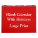 In red Blank Calendar With Holidays with large numbers and red wire you can find changeable text on front page. United States events and holidays are added too.