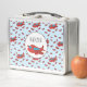 Red & Blue Airplane Pattern Custom Name Metal Lunch Box