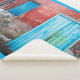 Red, blue and grey wall, door and window sherpa blanket
