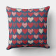 Red, Blue and White Hearts on Midnight Blue Throw Pillow