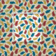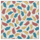 This playful pattern coordinates with designs from my Happy Bird-Day collection and features cartoon style illustrations of feathers in red, yellow and blue set against an off-white or cream coloured background.