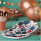 Make a bold statement at your next gathering with these modern paper plates featuring a striking design of red, blue, black, and grey circles with artistic paint drips. Inspired by screen printing and Asian aesthetics, this geometric design blends contemporary style with artistic flair. Perfect for adding a unique touch to any event!