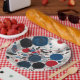 Red Blue Black And Grey Circles And Paint Drips Paper Plate