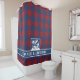 Red and Blue Buffalo Plaid, Rustic Moose, Monogram Banner Shower Curtain.