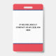 Vertical press ID with red and blue as accent colours. Add photo, logo, name, title, ID number and more.