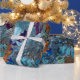 RED BLUE POINSETTIAS,CHRISTMAS STARS IN SPARKLES WRAPPING PAPER