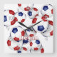 red blue soccer sports room athlete name square wall clock