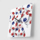 This soccer themed wall clock features the image of a cluster of varied size red, blue & white soccer balls - customize with the athlete's name - by katz_d_zynes