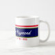 A modern and personalized design idea for a mug, with red and blue horizontal stripes and name (cool handwritten font style)