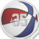 This custom basketball sticker features the realistic image of a basketball that has alternating red, white and blue recolored panels upon which you can personalize the athlete's name and jersey number - by katz_d_zynes