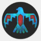 Black sticker with stylized thunderbird in red and blue.